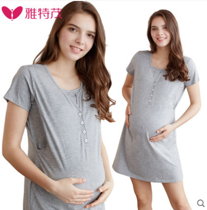 • 雅特茂 孕婦春裝短袖莫代爾連衣裙夏季哺乳睡衣產婦睡裙家居服薄